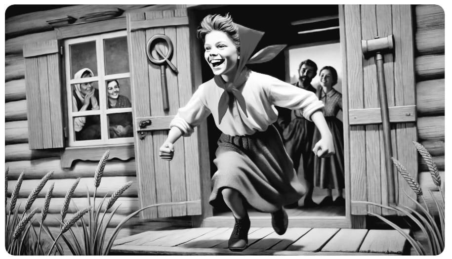 Die Bolschewiki, streng und schweigsam, blickten sich an. Schließlich hatten sie Mitleid: Sie ließen der Familie einen Sack Mehl und ein kleines Zicklein für Aufzucht zurück – damit die Kinder nicht ohne Milch blieben. Bevor sie gingen, warf einer von ihnen böse über die Schulter: