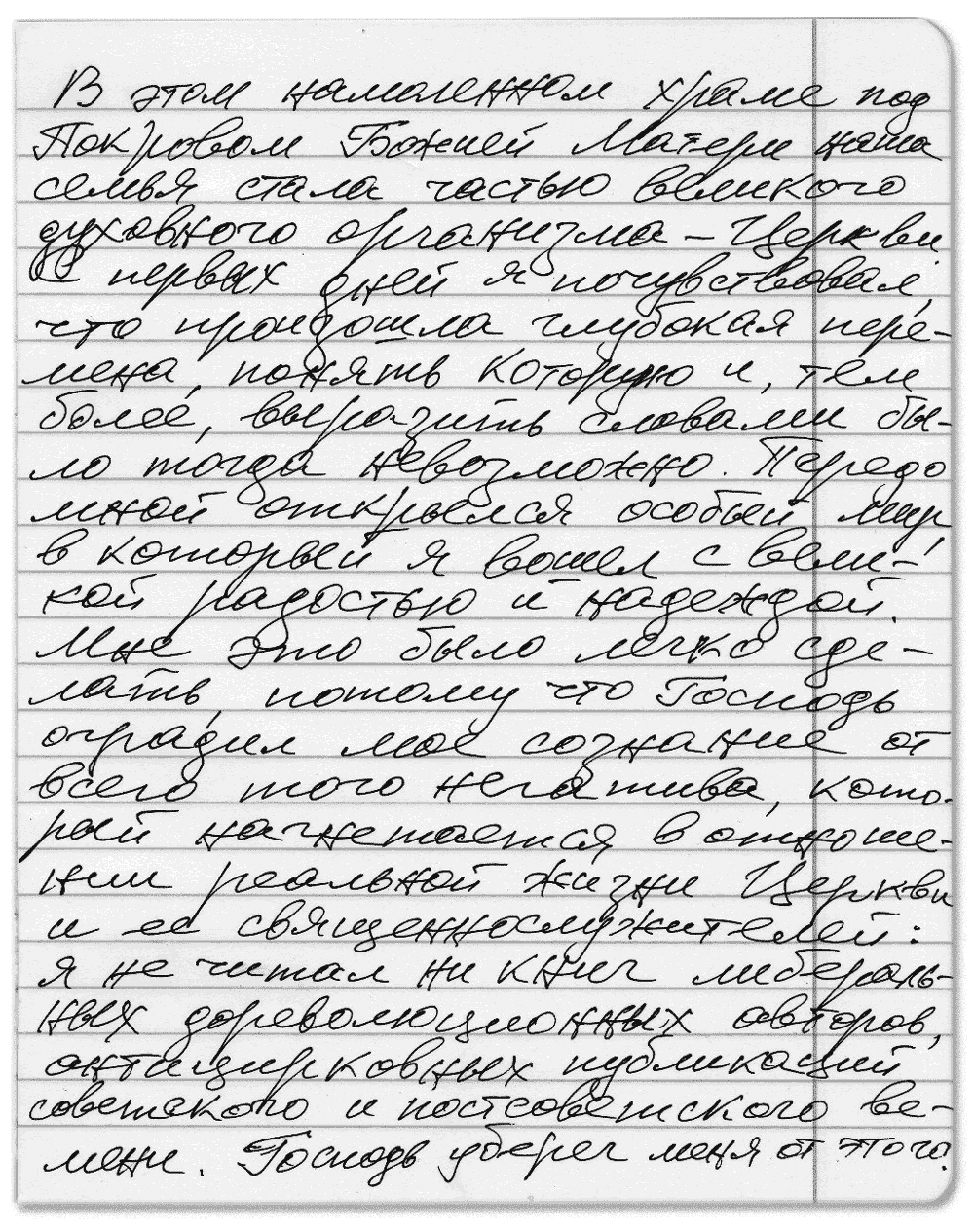 Чем ближе я подхожу к той черте, которая отделяет мою земную жизнь от будущей, тем чаще погружаюсь в прошлое. Желание вспомнить прожитую жизнь и записать все, что сохранила память, вызревало во мне недолго. Оно родилось как нечто естественное. Раньше я не догадывался, что это занятие может быть столь радостным и увлекательным. Объяснение этому нахожу в том, что именно сейчас, когда наступила старость, я полно вижу на всех этапах своей жизни направляющую десницу Божию. Отрадно наблюдать, как ведет Господь человека по жизни, сохраняя его и направляя на путь спасения. Как избавлял Он от гибели, как удерживал на протяжении всей жизни от выбора ложных путей.