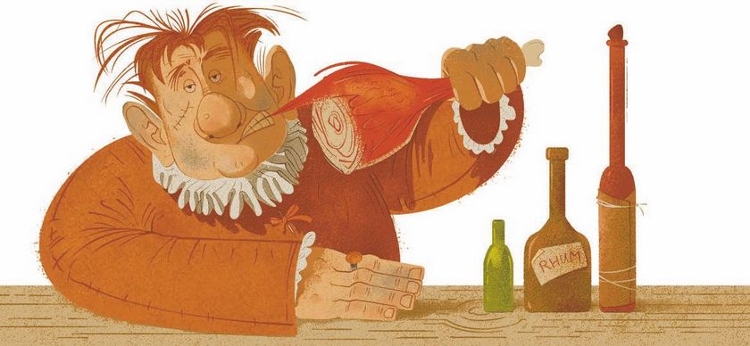 Прадедушка был сильно удивлён, когда увидел, что попал прямиком на бал. Он немного смутился, но даже и не подумал, что перед ним не кто иной, как разбойники. Барбос фыркал, отряхивался и, похоже, вообще ни о чём не думал. Прадедушка поклонился со словами «Доброго вечера всей честной компании!», присел в сторонке и заказал себе пива с сыром. Тогда один из разбойников, который лакомился отбивной, закусывая поочередно огурцами, мороженым и трубочками с кремом, ему и говорит: