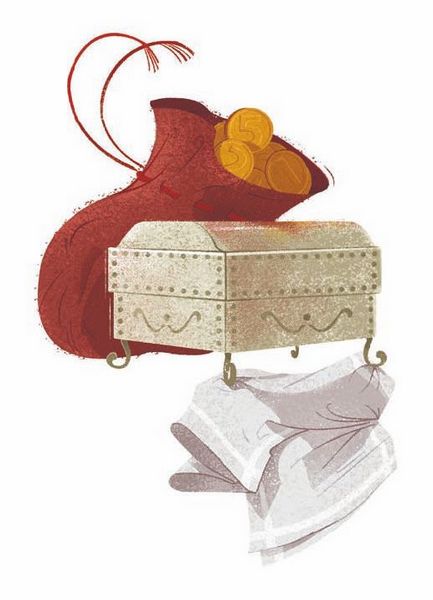 – Смотрите-ка, – говорит Лотрандо, – не ваши ли это деньги, табакерка и сопливчик? Ловко же Большой Плут их прикарманил. Ну, придётся вам пойти к нам в ученики, раз уж вы хотите и чужое брать, и свое не потерять.