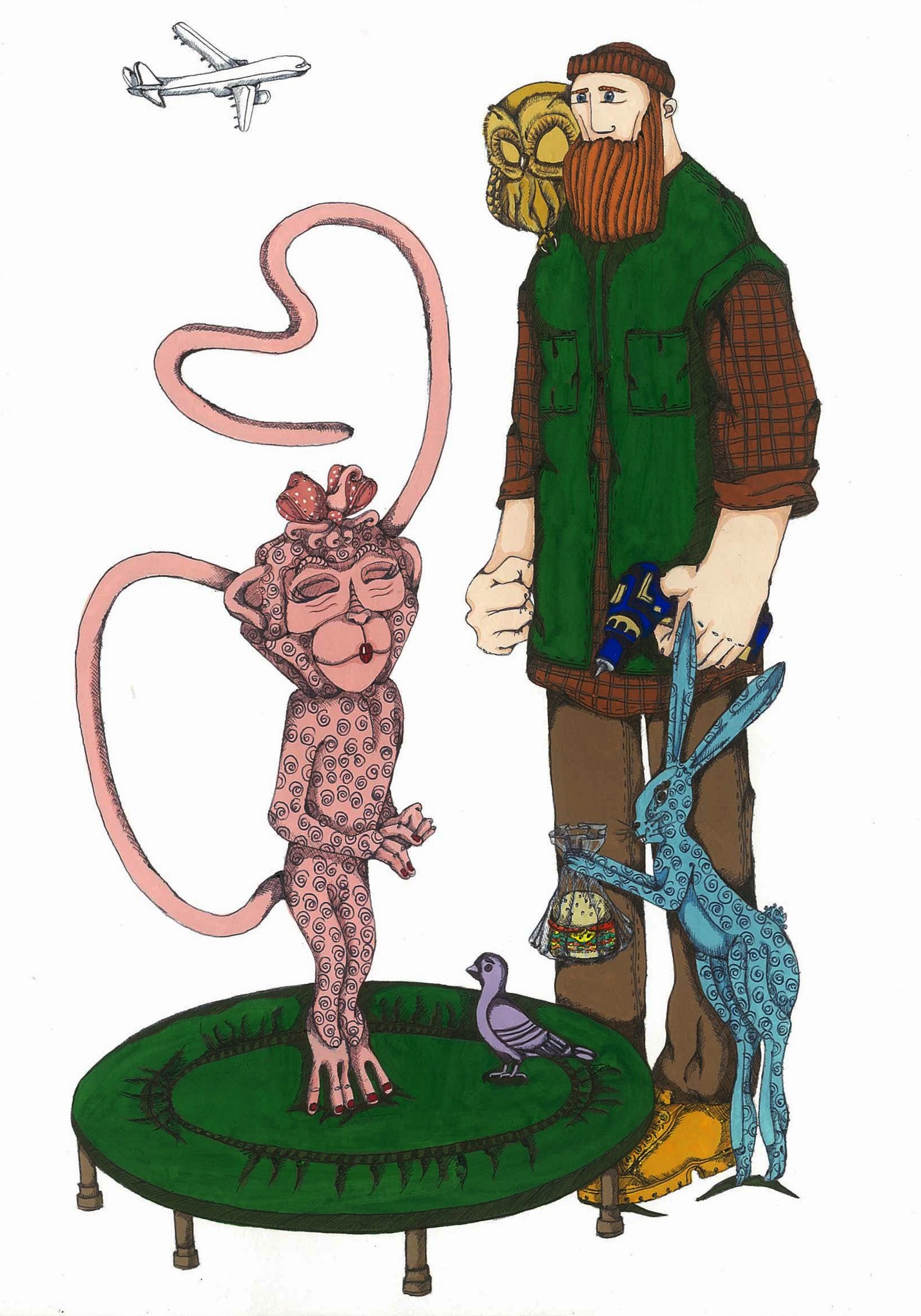 Лесник забрал Хвости ночевать в свой домик. А утром взялся мастерить батут, чтобы гостья из Африки смогла вернуться домой.