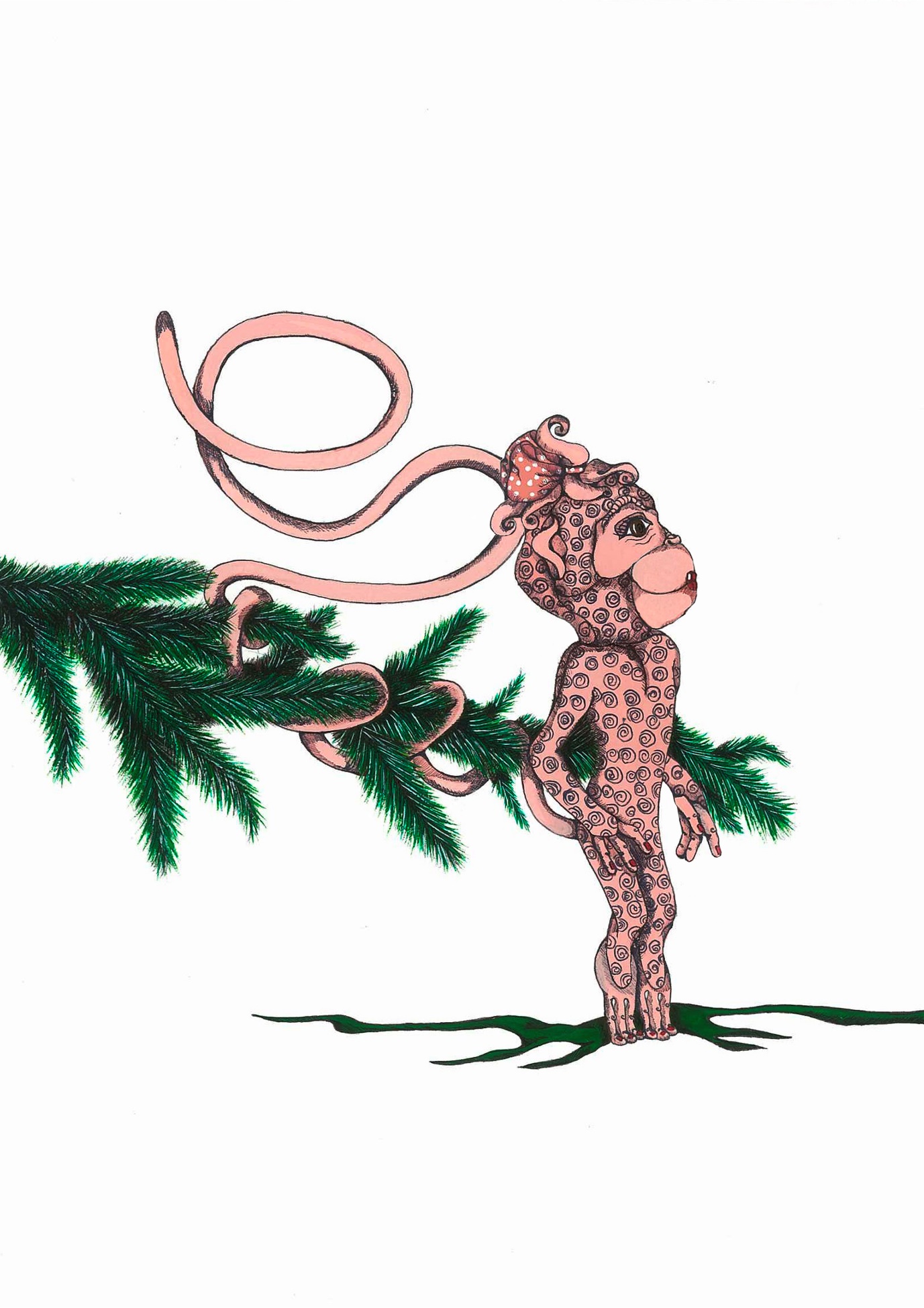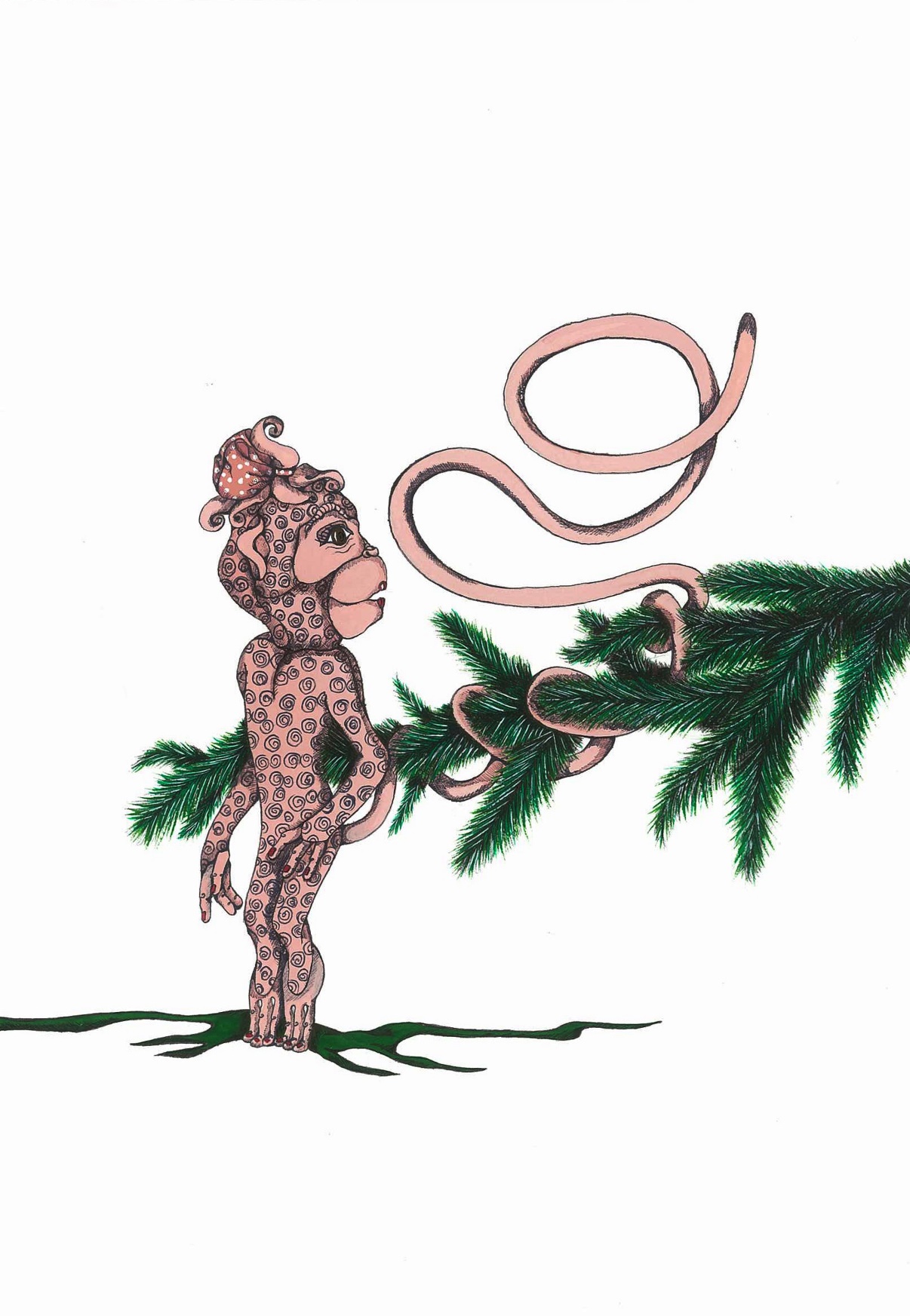 Мартышка очень удивилась, увидев незнакомые ели и березы. Ведь кроме пальм, других деревьев ей в жизни не встречалось.