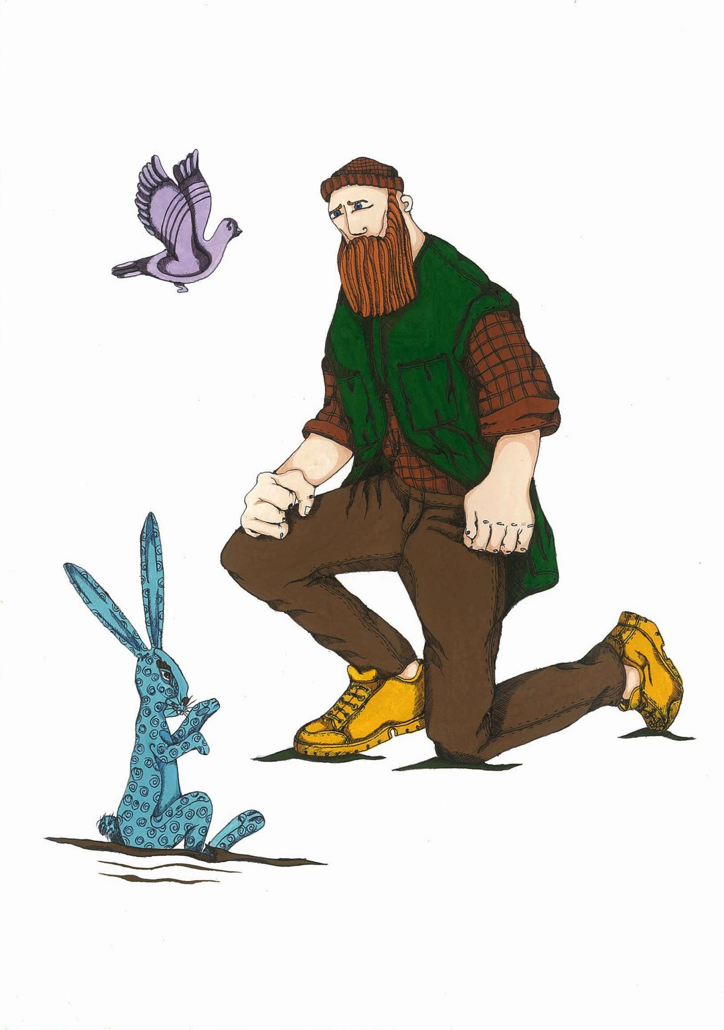 Зайчик стал рассказывать Сове о случившемся на своём заячьем языке. А она затем Леснику всё перевела на язык, который люди понимают.