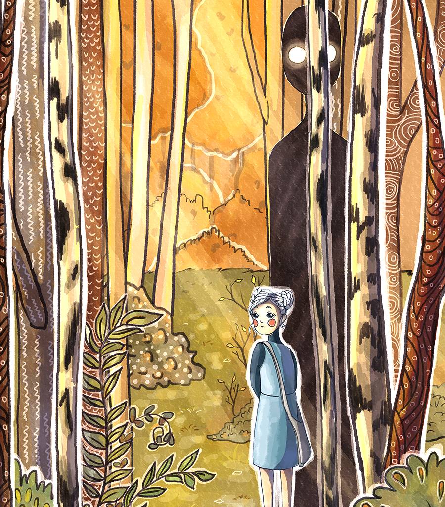 Девочка опустила голову, спрятала руки за спиной и подошла к деревьям. Виктор не понимал, как так получалось, что девочку в лесу он видит, а её отца – нет. Мальчик различал только грозный силуэт взрослого и круглые белые глаза.