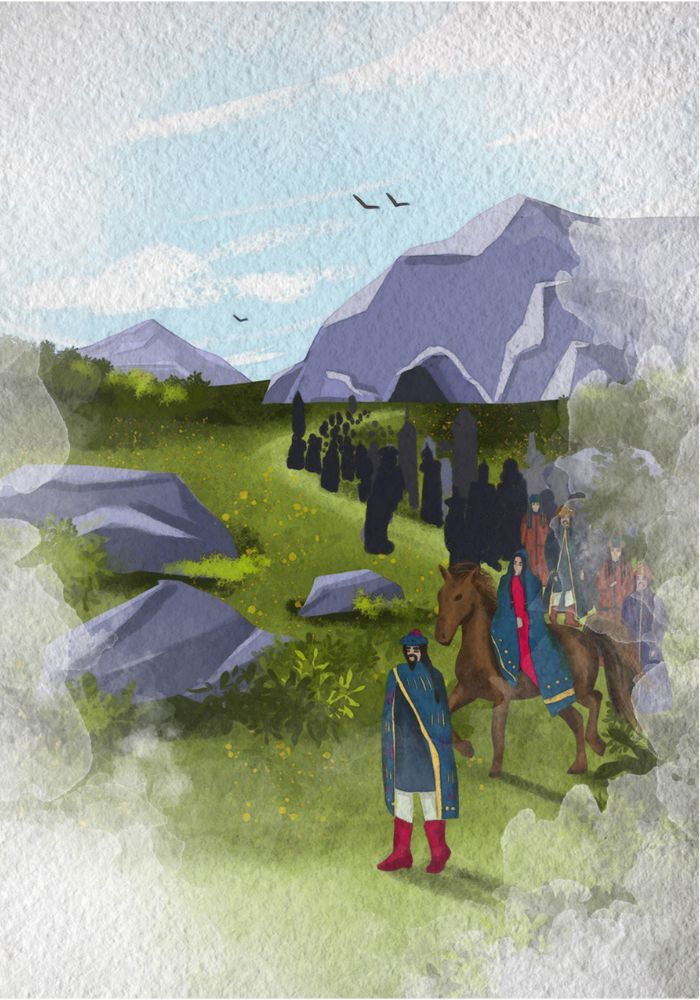 Утром десять юношей ушли в чужое для них племя, хоть и было им страшно, ведь их могли не принять и убить, а ещё дикие звери могли растерзать их в ночи…