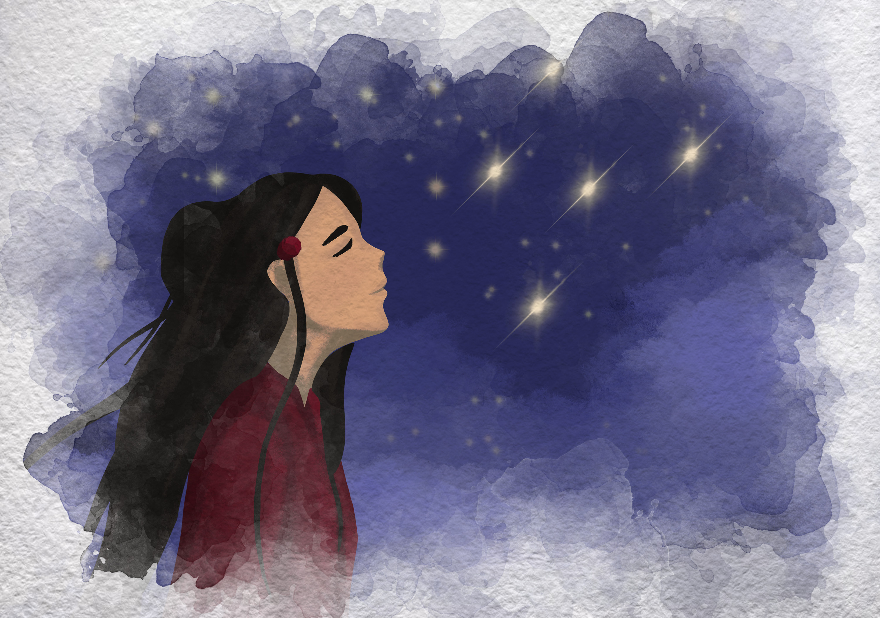 Это случилось давно, когда людей на земле было очень-очень мало, и земля казалась им огромной, а ночи очень тёмными и страшными, ведь на небе не было ни звёзд, ни луны. Жило в то далёкое время одно племя, люди в котором были очень маленького роста, самый высокий человек не выше метра. Это если табурет поставить на ещё один табурет – вот такого они были роста. Волосы их были чёрные, как смоль, кожа жёлтая, глаза – бусины, красивые и искрящиеся, как наша ночь. Они жили в глубоких пещерах и выращивали разные травы.