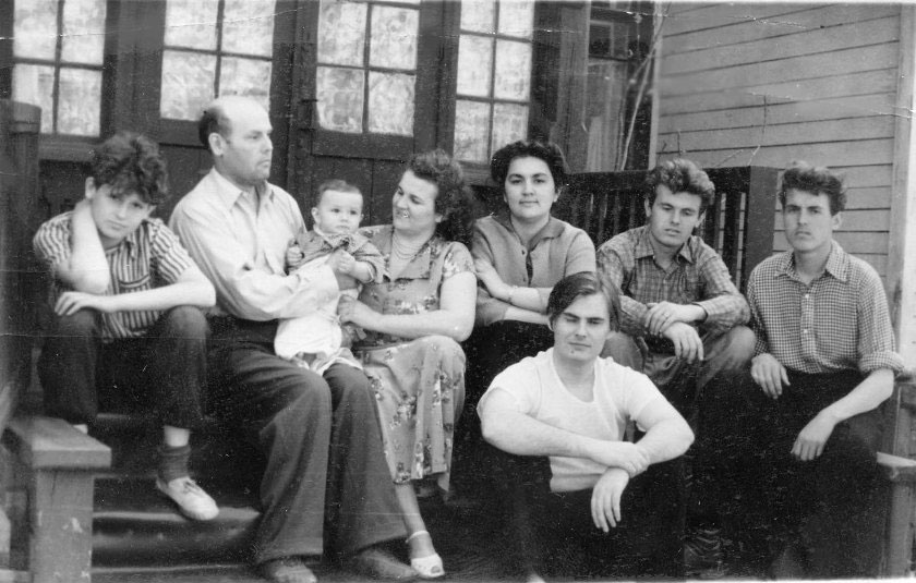 В скромных жилищных условиях жила дружная многодетна я семья молодого директора (г. Павлоград). Слева направо: сын Алеша, Я. Ф. Савченко с внуком Сашей, З. В. Савченко (жена), Оля (жена старшего сына Оливера), Оливер (сын), Георгий (сын), Яков (сын)