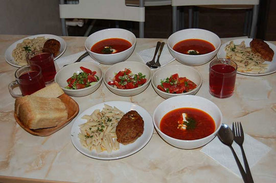 Технология готовки мной была отработана в период работы в Прагме. Здесь всё отличалось лишь тем, что за готовыми обедами приезжали ребята со склада. Они забирали бидон с первым блюдом (супы, борщ, солянка и т. д.), и кастрюли со вторым блюдом, гарниром и салатами. На базе работала уборщица, которая заодно обслуживала обедающих сотрудников, и мыла тарелки. А к вечеру мне привозили грязные кастрюли обратно домой.