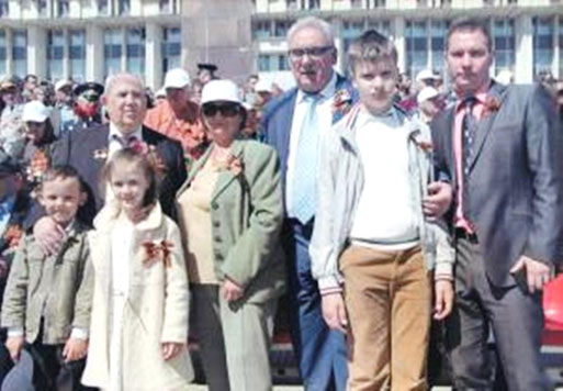 Н. А. Макаровец с супругой, внуком Макаром, а также внучкой Е. А. Дронова и Е. А. Дронов с внуком.