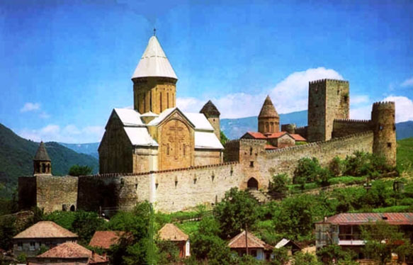 Крепость Ананури расположена в Грузии на Военно-Грузинской дороге в 70 км от Тбилиси. Крепость относится к ранней феодальной эпохе и служила форпостом обороны, перекрывая дорогу, ведущую из Дарьяльского ущелья. На ее территории расположено три храма и башня с пирамидальной крышей – самая первая постройка на месте крепость. Замок Ананури предложен к включению в список Всемирного наследия ЮНЕСКО.