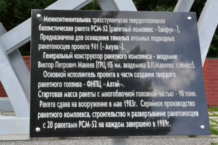 Щит России это ядерные стратегические твердотопливные ракеты. Головное предприятие разрабатывающее это направление является Московский теплотехнический институт вместе с другими НИИ. В Бийске подобное предприятие создали в 1958 г под названием НИИ-9, затем переименовали в АНИИХТ (Алтайский научно иследовательский институт химических технологий). Перед пятью различными НИИ устроили конкурс по созданию твердотопливных, высокоэнергетических, высокоэластичных топлив для ракет. Аниихт тоже включился в эту работу выиграл конкурс. Своими разработками помог ОКБ -1 Королева сделать крупногабаритные заряды (30 тонн и больше). АНИИХТ со своими рецептурами и вместе с ФЦДТ «Союз», а также другими предприятими создали ракетные комплексы «Темп-2с», "Пионер", «Тополь», "ТопольМ", «РСМ-45», "РСМ-52" Тайфун, «РСМ-52В» Барк, принял участие в изготовлении «Булава». АНИИХТ у своей проходной выставил изделие при изготовлении которого принимал участие.