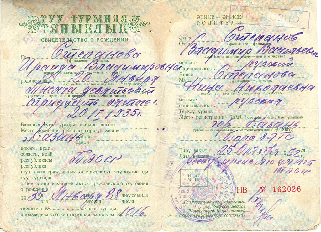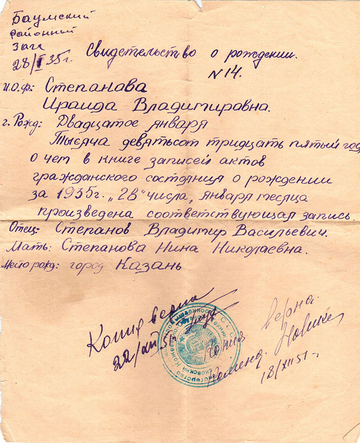 А в 1952 уже была выдана копия на официальном бланке свидетельства о рождении.
