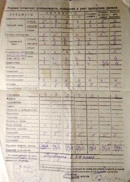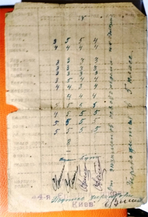 В 1945–46 я училась в Киеве в 5 классе и была оставлена на 2-й год, так как по украинскому языку у меня были двойки.