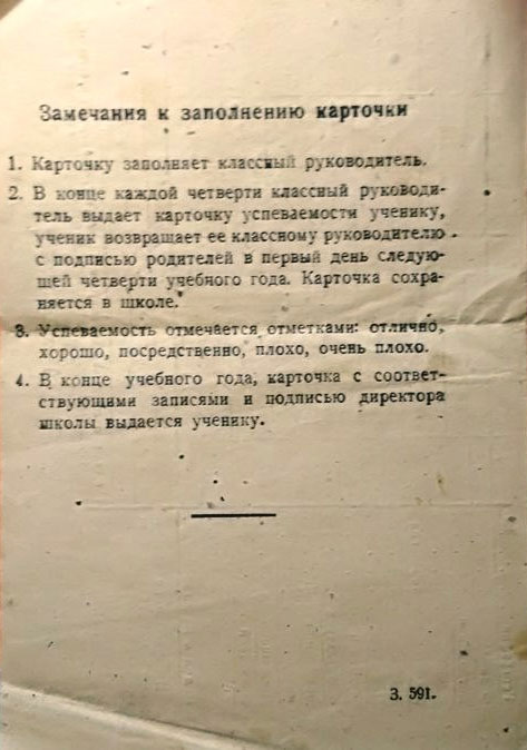 4. В конце учебного года карточка с соответствующими записями и подписью директора школы возвращается ученику.