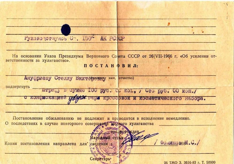 3 марта 1984 года Стэлла вышла замуж за Юрия Ануфриева, а 3 мая Юру арестовали…