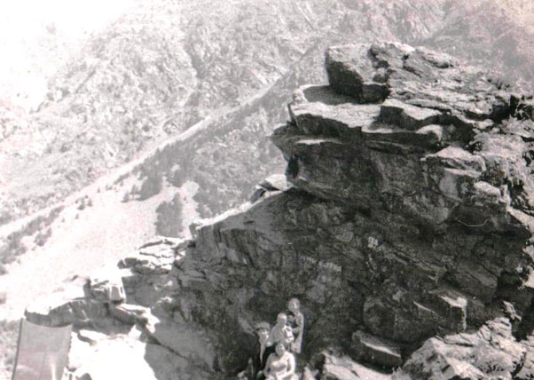 На крутом подъёме перегрелся мотор. Пока он остывал, Виктор залез на скалу и сфотографировал нас сверху.