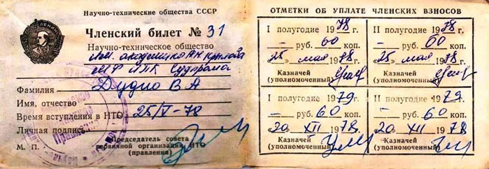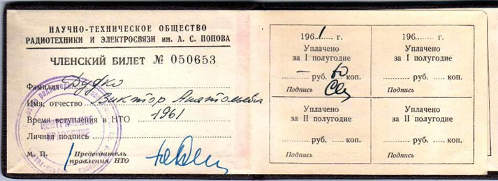 Интересно – что давало членство в научно-техническом обществе радиотехники и электросвязи им. А. С. ПОПОВА. Наверное, кроме уплаты членских взносов – другими обязанностями не загружали.