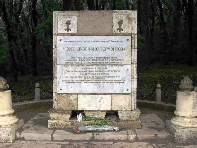 Место дуэли Лермонтова в Пятигорске – это поляна на северо-западном склоне Машука. На этом месте 15 июля (27 июля по григорианскому календарю) 1841 года состоялась роковая дуэль. Место отмечено обелиском.