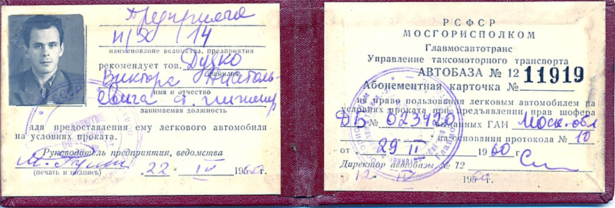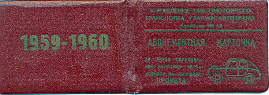 Поехали в Люберцы и по ходатайству предприятия получили абонементные карточки, по которым хотели получить легковую машину в прокат на несколько дней.