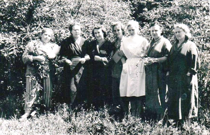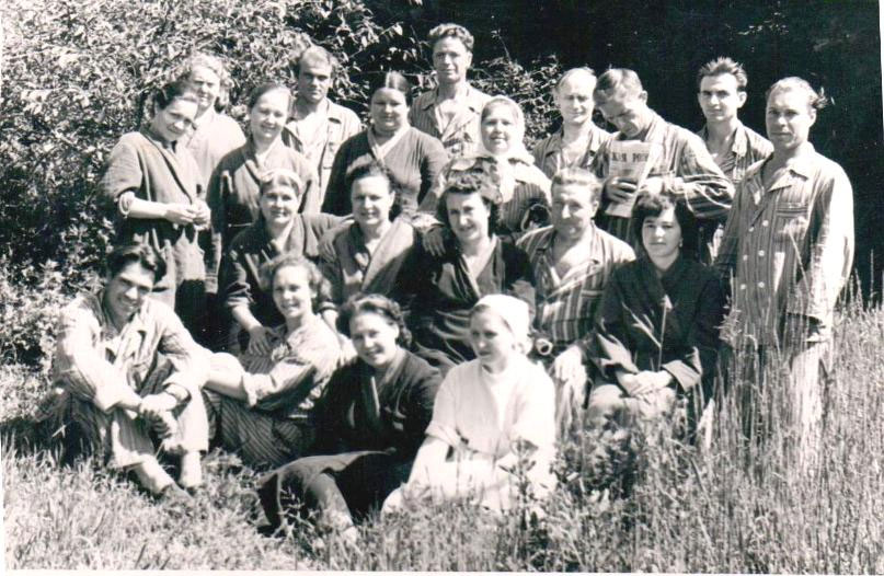 Я (Ираида) в нижнем ряду, рядом с мед. сестрой, которая в обязательном порядке сопровождала больных во время прогулки. Слева от меня – Галочка, у которой был роман с тем Рыбкиным, по учебнику которого мы учились в школе.