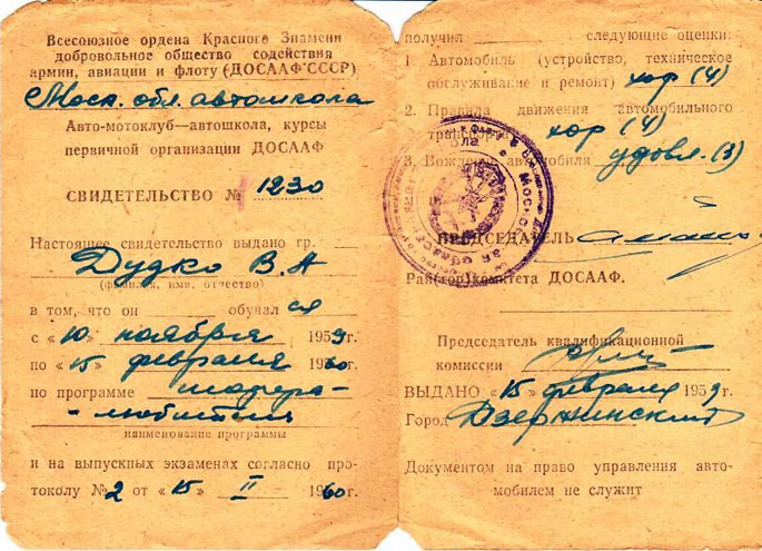 ВСПОМИНАЕТ ВИКТОРМы ещё не успели «опериться» в своей семейной жизни, а уже стали мечтать о собственной машине. По крайней мере, очень хотелось получить права, для чего мы с Сашей Смирновым поступили на курсы вождения, которые окончили в 1960 году, и получили права. Практику вождения мы проходили на грузовой машине ГАЗ-51.