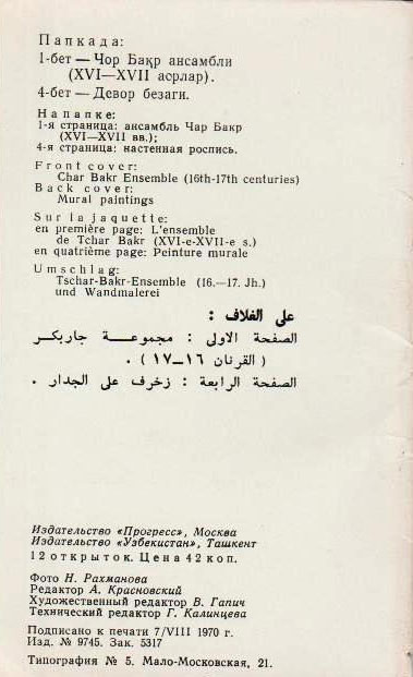 Зато в Бухаре мы купили на память набор открыток, изданных в 1970 году. Открытки хранились в нашем семейном архиве уже 50 лет и в данный момент вполне могут заменить наши утерянные снимки.