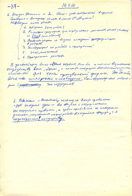 В связи с преклонными годами и возрастными болезнями, мне приходится понемногу разбирать и уничтожать сохранившиеся рабочие тетради и записи.