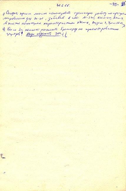 Продолжение записей Виктора…(Проектировочные работы). К сожалению это так и не было реализовано, хотя безусловно означало, что эта группа должна перейти в состав конструкторского направления. Эта группаи работников переросли свою специальность и превратились в высоко квалифицированных баллистиков + программистов, хотя такой специальности пока официально не существует.