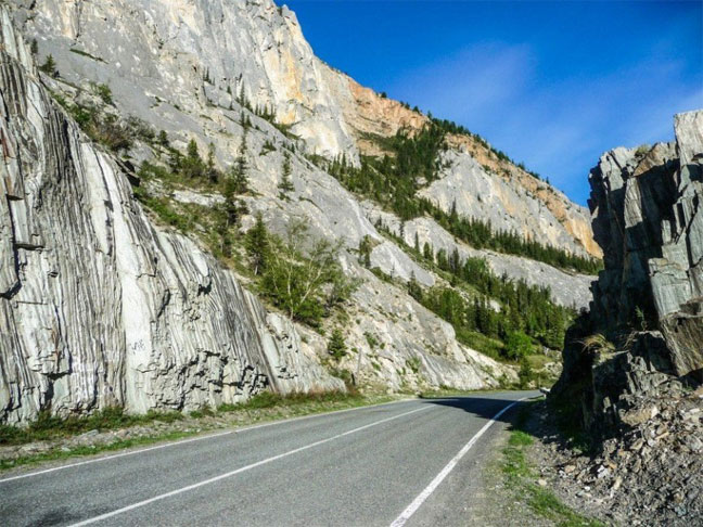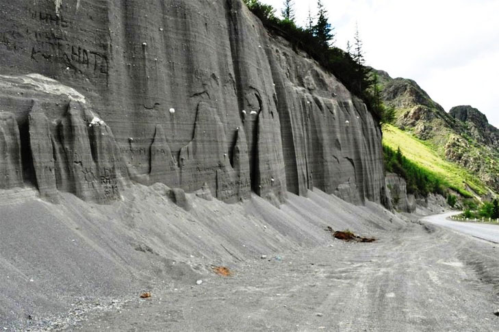 Расположена на 687 километре трассы. Очень интересная и красивая природная достопримечательность. Своеобразный вертикальный срез горы, который в некоторых местах превышает отметку в 30 метров! Сама гора состоит из слежавшегося песка.
