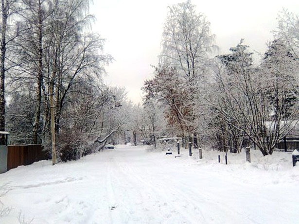 Вот, по такой пустынной зимней дороге мы с Милочкой бегали на работу от электрички до пансионата – рано утром и возвращались поздним вечером…