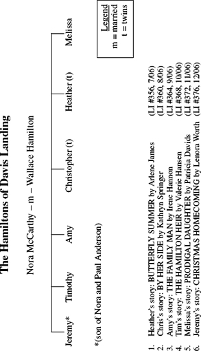 But he hadn’t been invincible after all, as recent events had demonstrated. According to Bryan’s father, Wallace had been seriously ill with leukemia for some time, and was now coping with the aftereffects of a bone marrow transplant. In addition, the Hamilton family had been rocked with scandal. If the front-page headlines in the Davis Landing Observer—the town’s other daily paper—were to be believed, Jeremy Hamilton, vice president of Hamilton Media, wasn’t Wallace’s son. Since that story had broken, Jeremy had resigned, and the reins of the company had been passed to Tim Hamilton, the next oldest son. Betty at the Bakeshoppe, where Bryan had stopped for a quick cup of coffee before his interview, had told him that news—and also that the youngest Hamilton daughter, Melissa, had run off with her boyfriend. It seemed wealth didn’t insulate people from problems. Even the mighty Hamiltons were vulnerable to scandal and sorrow.