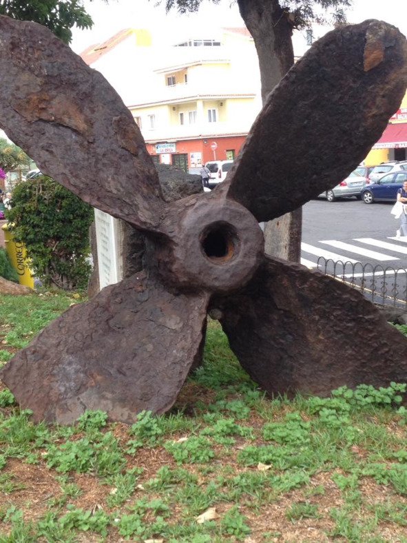Так и вышла с мыслью о равновесии, наверное поэтому сразу попала в сад равновесия – огромное пространство на бушующем волнами берегу из сложённых известным образом камней с инсталляцией, символизирующей остановленную динамику волны из стальной арматуры. Дальше больше – упокоенный гребной винт сто лет назад затонувшего норвежского судна.