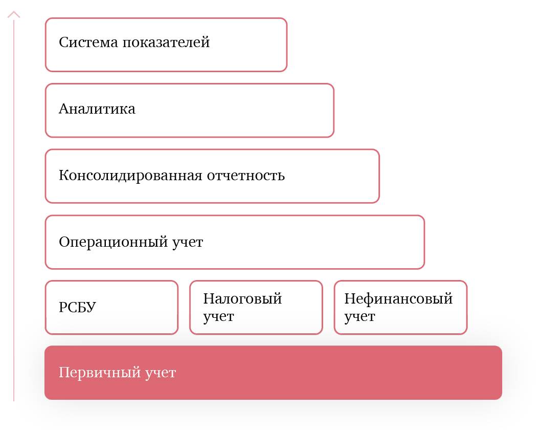 Первый уровень – это фундамент. На этом этапе фиксируются данные о каждой хозяйственной операции.