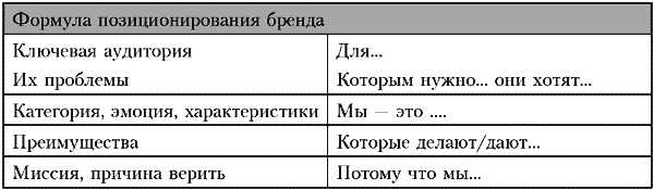 Предлагаю вам прописать позиционирование вашего бренда по приведенной ниже формуле.