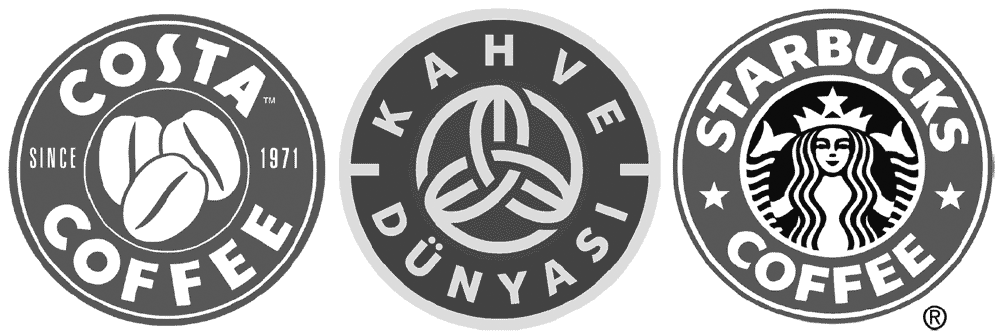 Рис. 5. Логотипы трех брендов: CostaCoffee, KahveDunyasi и Starbucks.
