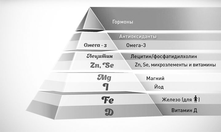 Я часто повторяю, что недостаток основных веществ представляется мне в виде пирамиды (рис. 1). Помните пирамиду потребностей Маслоу? Вот с дефицитами примерно то же самое. И устранять их нужно не с вершины, а с основания. Пока не устранен низший, нет смысла устранять верхние. Нет смысла восполнять более высокую потребность, пока не восполнена базовая.