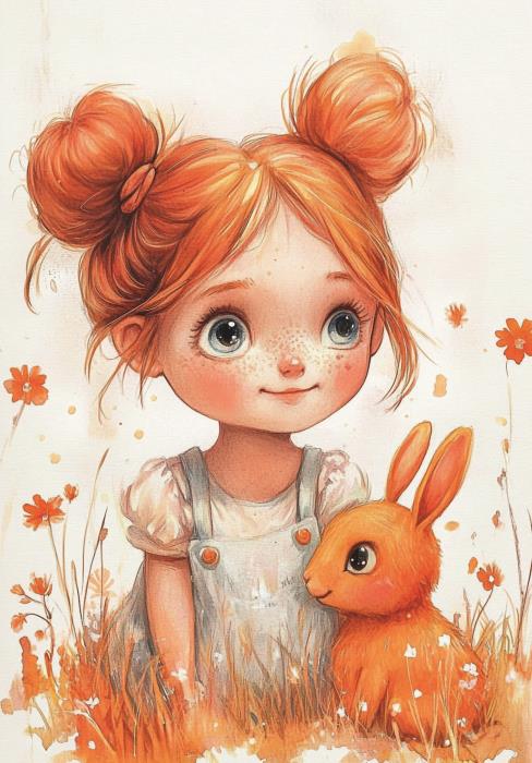 Кролик заморгал глазами, зашевелил нарисованными лапками, и через минуту на столе стоял живой, пушистый оранжевый Кролик. Он изумлённо посмотрел на девочку и спросил: