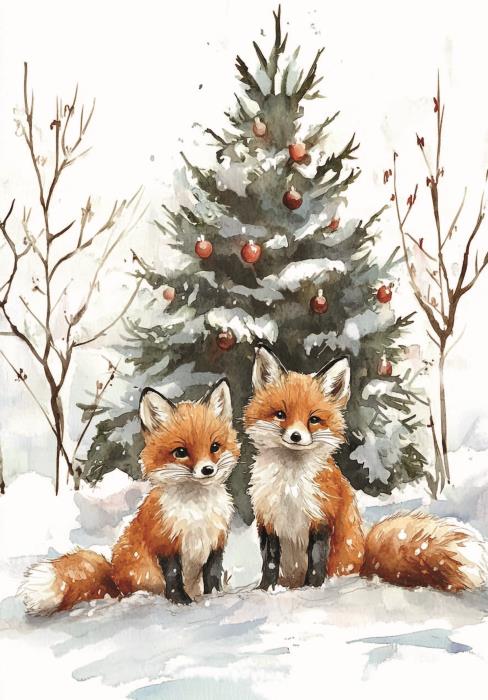 Два лисёнка в Новый год украшают ёлку.На нос падает снежок, сыплется с иголок.Вот повесили шары, дождик разбросали…Скоро к ним придут друзья, в хоровод все встанут.Будут вместе песни петь и дарить подарки,Как же хорошо встречать праздник, где всё ярко!