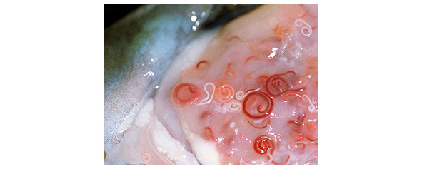 – цестодоз – заражение ленточными червями, которое происходит через употребление термически плохо обработанное мясо, рыбу;