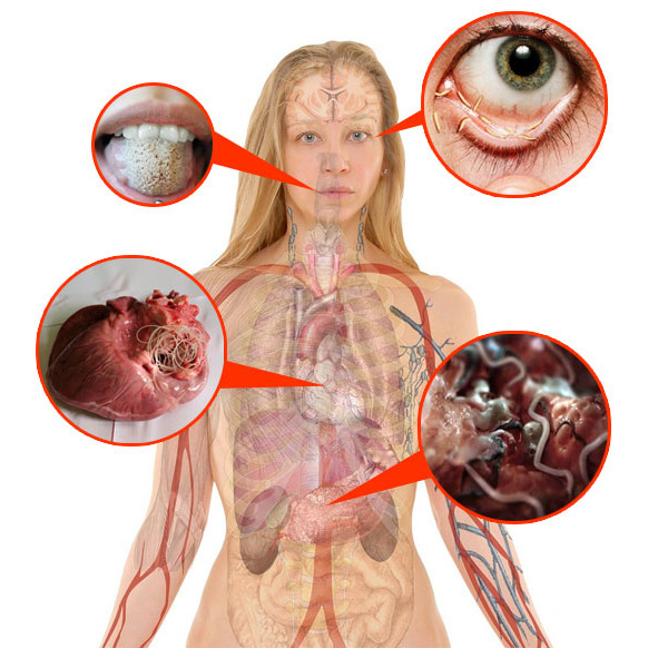 Диагностика при начале лечения показала, что паразиты буквально могут забить кишечник, жить в кровеносных сосудах, их отходы жизнедеятельности попадают в кровь, вызывая воспаления и постепенно уничтожая части сердца. В целом все тело может быть нашпиговано червями разных видов., причем какой-то незначительный фактор может послужить толчком к их активному размножению. В зависимости от среды обитания, они могут приводить к различного рода последствиям. Так, сердечные черви в финале чаще всего приводят к остановке сердца, паразиты, обитающие в головном мозге – к шизофрении, раку или параличу, паразиты печени – к гепатиту и опухолям печени. И всего этого можно избежать, если признать эту проблему – - проблему наличия.