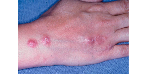 Трещины, пузыри, потертости (не мозоли, а образуются потертости непонятного характера, вроде бы ничего не стирали, например, в паховых складках – образуется что-то мокнущее). Везде, где шелушится, трескается и мокнет одновременно.