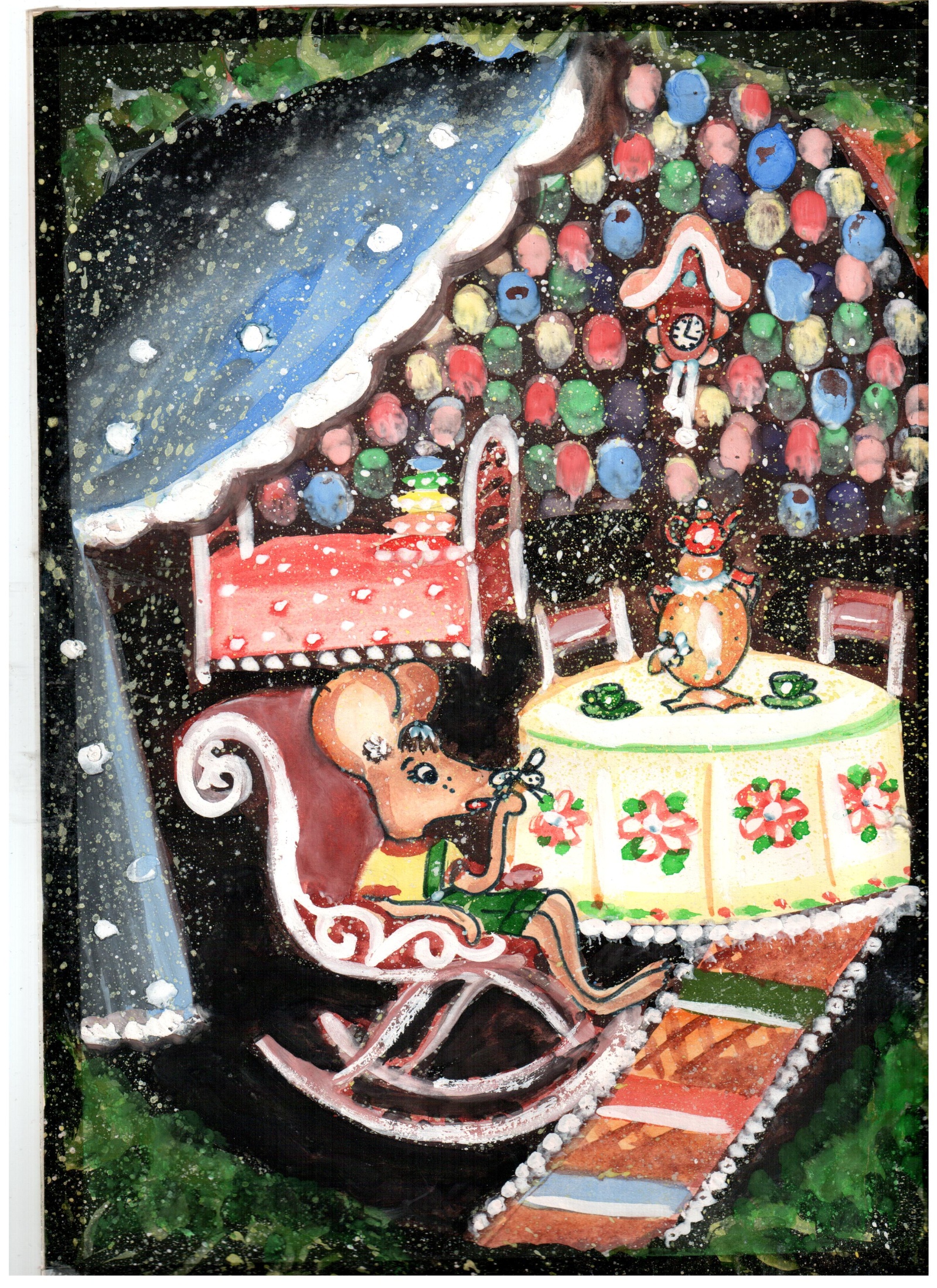 Мышонок любил коллекционировать яркие фантики от конфет, и поэтому друзья прозвали его Фантиком. Он часто ходил к конфетному магазину, где всегда можно было найти много фантиков от шоколадок, леденцов, карамели и даже коробки от тортов. Мышонка привлекал конфетный запах, но попробовать сладостей ему не приходилось, потому что конфеты никто не бросал на дорогу, а только бумажки. Мышонок собирал фантики и обклеивал стены в своей каморке. Его домик был очень маленький, но уютный: стены пестрели конфетными обоями, стол и стулья были сделаны из коробок от тортов.