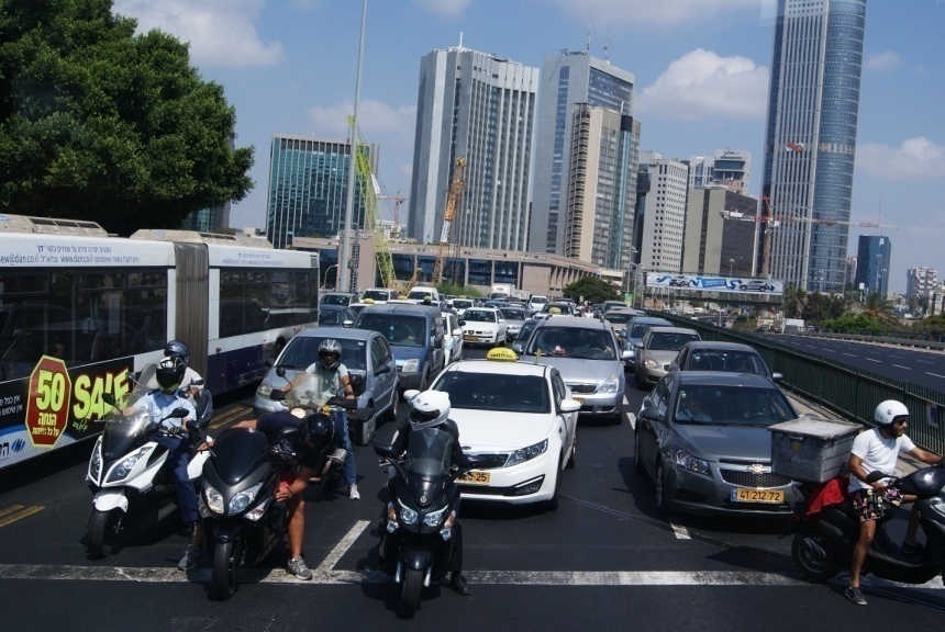 Потом мы въехали в новый город – высоченные здания из стекла и бетона, пробки из дорогущих машин и мотоциклов. На улицах множество машин, машины новые, потому что в Израиле существует закон, что за старую машину нужно дорого платить. Но дорогие здесь не только машины, а в первую очередь жилье.