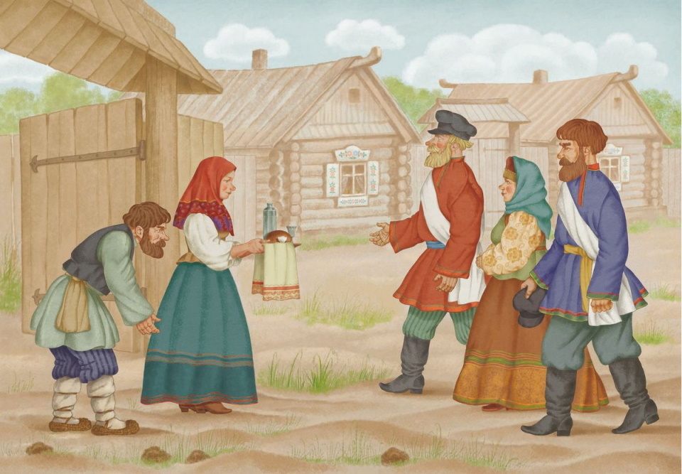 Вернулись с ярмарки в свои деревни. А через месяц Никодим Медведь появился у Мочалиных со сватами. Настасья как увидела их у дома, ахнула да спряталась. А сёстры выбежали на крыльцо гостей встречать, в избу приглашать.