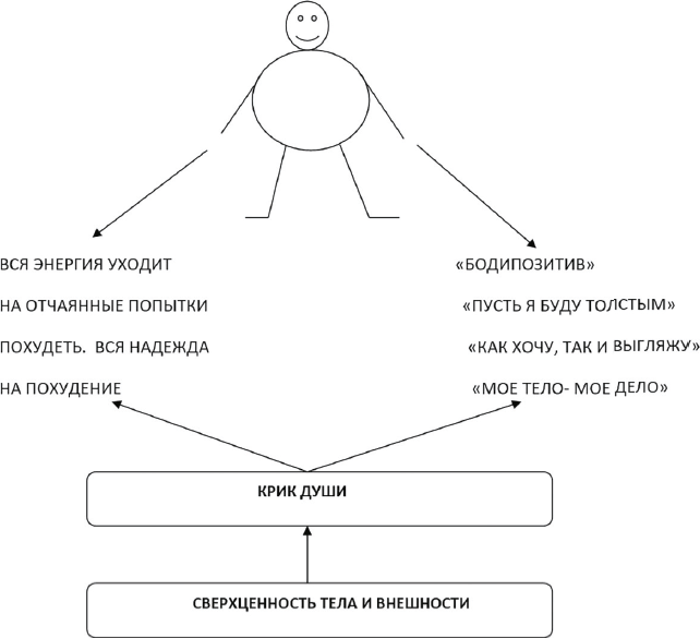 Стремление похудеть – это своеобразный поиск счастья, стремление к счастью. И всю эту ответственность за возможность получения всего счастья в этой жизни человек перекладывает на тело…