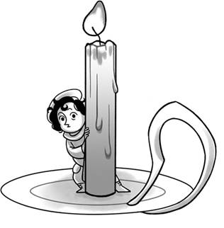 – Ты чего это? – удивился человечек и медленно скатился по свечке вниз. – Ты что, боишься что ли??? – усмехнулся он.