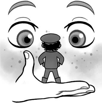 Мальчик опустил руку на пол, и маленький гость уселся на его мизинец, словно на большой диван.