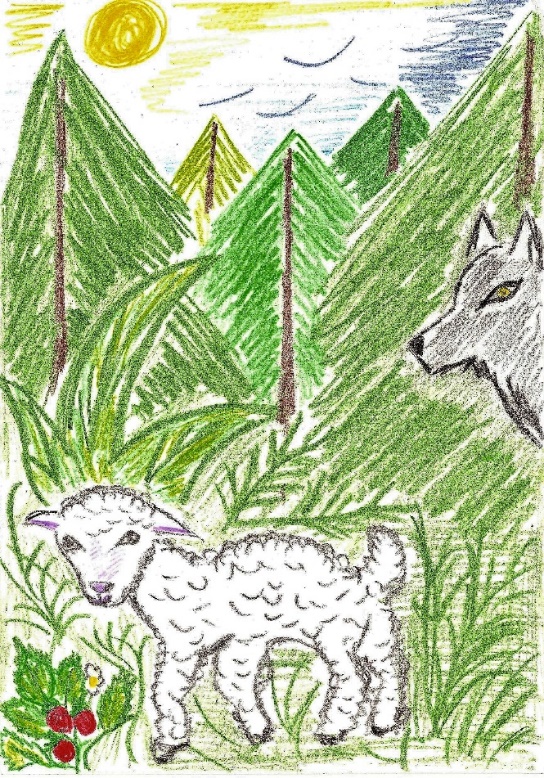 Олечка оставила на блюдце недоеденную булочку и помчалась во двор. К её удивлению, там уже был Антошка. Увидев Олю, барашек опять жалобно заблеял. И тут неожиданно для себя Оля его поняла! Нельзя сказать, что барашек заговорил человеческим голосом. Вовсе нет! Просто теперь, слыша блеянье, она стала понимать его смысл! Барашек хотел домой! Вот как просто! И, как будто почувствовав, что его понимают, барашек рассказал, что он живёт с родителями в деревне на другом конце леса. Мама строго–настрого запрещала ему уходить далеко от дома. А ему так хотелось посмотреть мир. И вот сегодня утром, когда они вышли гулять, он незаметно убежал в лес. Как всё интересно было там: и большие деревья, и густые папоротники! А какая там была красивая брусника! И вдруг он увидел какую–то тень позади в кустах. Оглянулся – на него смотрели злые жёлтые глаза! Волк! Бедный маленький барашек помчался, не разбирая дороги, пока не оказался в этом дворе. Как найти теперь свой дом? Как не встретить этого злющего и вечно голодного волка?