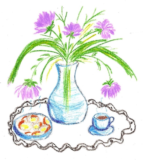 Девочка на цыпочках вышла из комнаты, чтобы не разбудить родителей, и открыла дверь на кухню. Она думала, все ещё спят, но, оказалось, мама уже напекла сладких ватрушек к завтраку и накрыла на стол. В кухню вошёл папа и первым делом, улыбаясь, спросил: