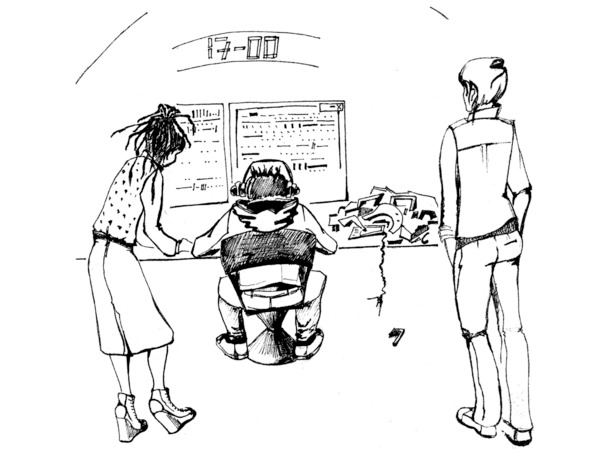 Дверь почти бесшумно отъехала в сторону. Ярко-зеленая макушка Ланы виднелась над грудой обломков каких-то устройств, по-видимому, доставленных с Островов. Тихона было вообще не видно. Неужели отлынивает? Не похоже на него… Мысленно скрипнув зубами, Аля обошла Хеопсову пирамиду из оплавленных деталей и обнаружила обоих программистов: Иващенко по-турецки сидел на полу возле точеных ножек Ланы, видневшихся из-под строгой юбки, и, азартно бормоча что-то себе под нос, стучал по клавиатуре, неотрывно глядя, кажется, одновременно в три голографических окна.